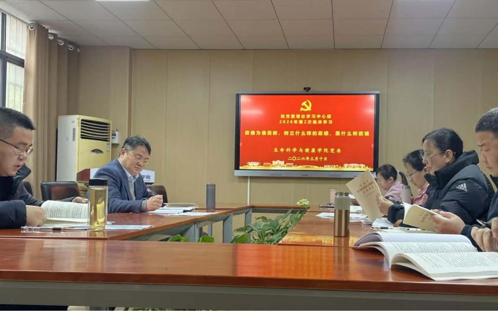 3月10日下午,色色漫画 党委理论学习中心组在生物楼110举行2026年第二次集体学习(扩大)会,深入学习贯彻习近平总书记关于树立和践行正确政绩观的重要论述精神,传达落实中央、省委党的建设工作领导小组会议精神。院党委书记龙赢主持会议并作总结发言,学院党委理论学习中心组成员、三办主任、教工党支部书记、组织员参加学习。
