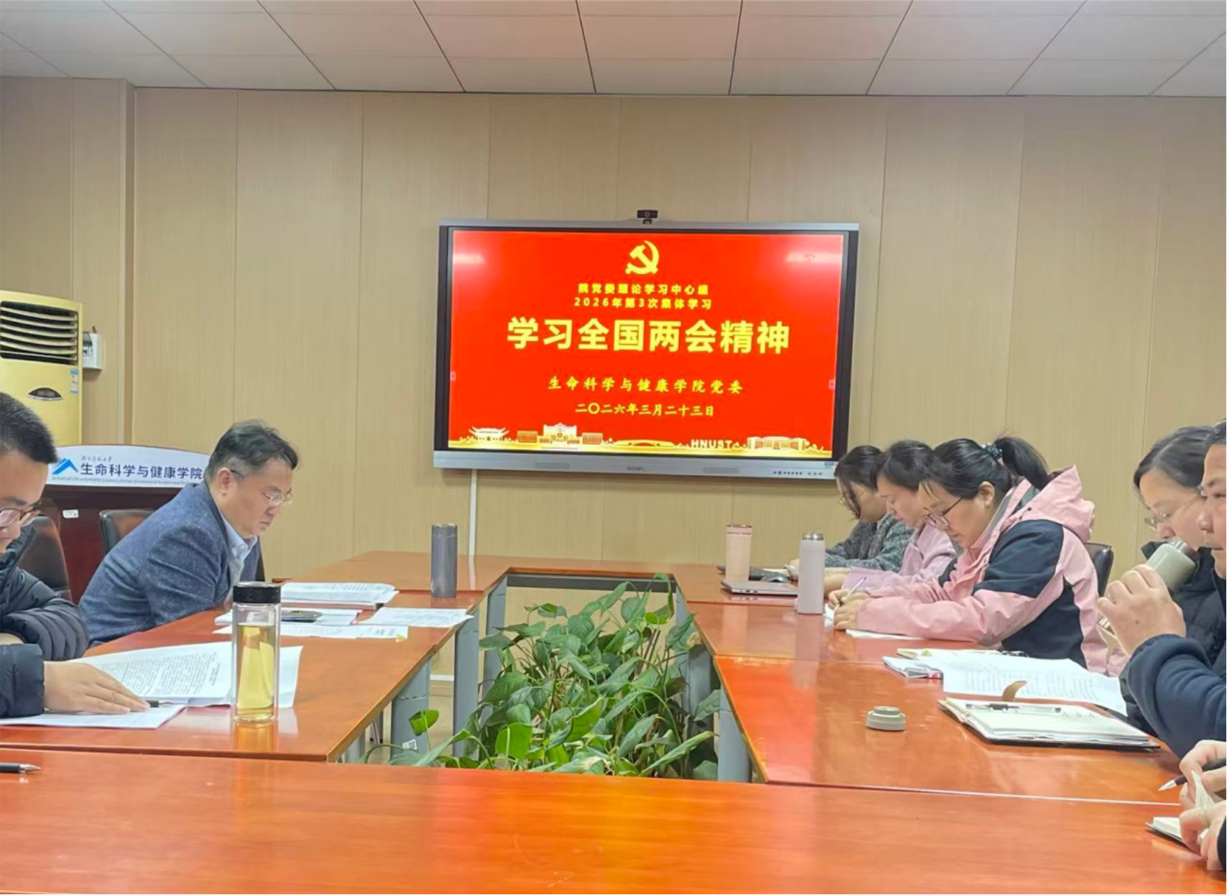 3月23日上午,色色漫画 党委理论学习中心组在生物楼110举行2026年第三次集体学习(扩大)会,深入学习贯彻全国两会精神。院党委书记龙赢主持会议并总结发言,学院党委理论学习中心组成员、三办主任、教工党支部书记、组织员参加学习。