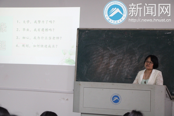 王先华老师所做的题为“认准方向,准备自己,拾级而上”的讲座同样非常精彩。王先华从认识自己、准备自己、发展自己三个方面进行介绍。讲座伊始,王先华讲述了自己的教师工作经历,从年轻时代自身对教师工作的认识、选择,到坚定自我,为中学生物学教师专业发展不断做准备,坚持留心生活和大自然,培养自己的教育情怀,积极参与教学竞赛活动,最后抓住机遇,拾级而上,从岳阳的乡镇老师中脱颖而出,到长沙市一中就职,从而进一步发展自身专业素养,实现教育理想。通过对自身经历的讲述,王先华为面临就业的同学们提出了几点建议:第一,谨慎选择,每个行业都是不容易的,对于教师这个行业也是如此,同学们认准方向之后便不能轻言放弃;第二,准备自己,想要获得好的就业岗位需要提前两年进行扎实的准备,在教学中要有特长;第三,拾级而上,从低起点凭借自己的努力勇于抓住机会提升到更高的平台,不断提升自己。