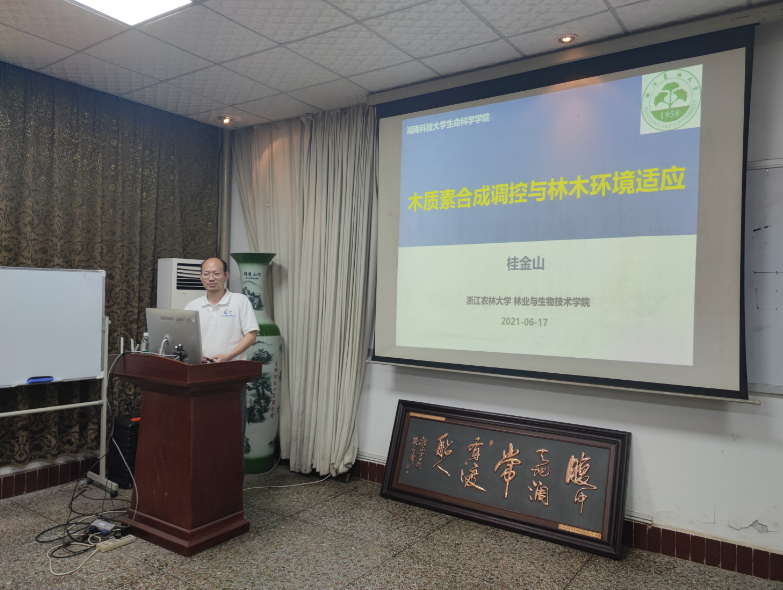 2021年6月17日色色漫画 邀请中国科色色漫画 分子植物科学卓越创新中心研究员、浙江农林大学教授、国家自然科学基金优秀青年基金获得者桂金山博士来色色漫画讲学,并作题为“木质素合成调控与林木环境适应机制研究”的学术报告。色色漫画部分教师与研究生参加了此次报告会,报告会由彭佳师博士主持。