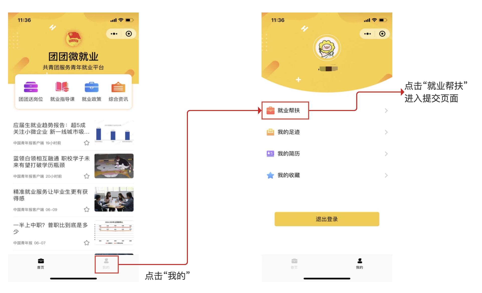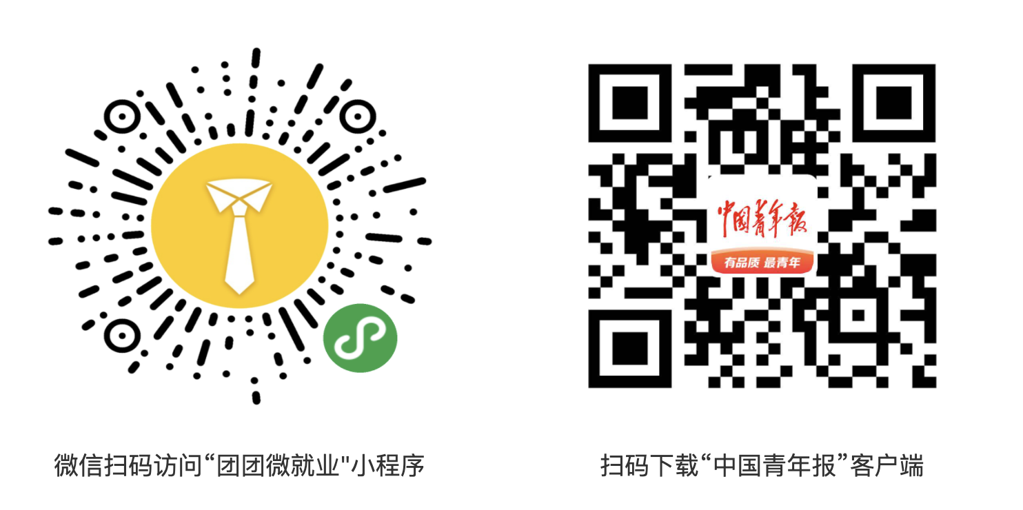 各高校团干部可在两个平台入口提交困难毕业生的帮扶结对名单:团团微就业小程序、中青报客户端APP的就业频道。访问或下载方式如下图: