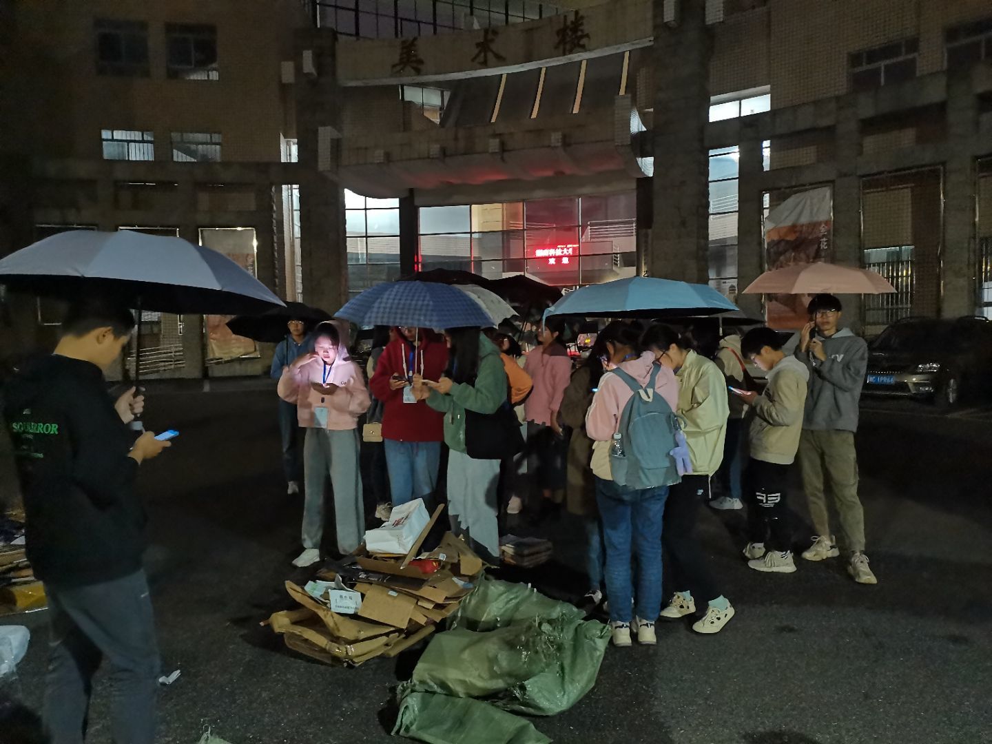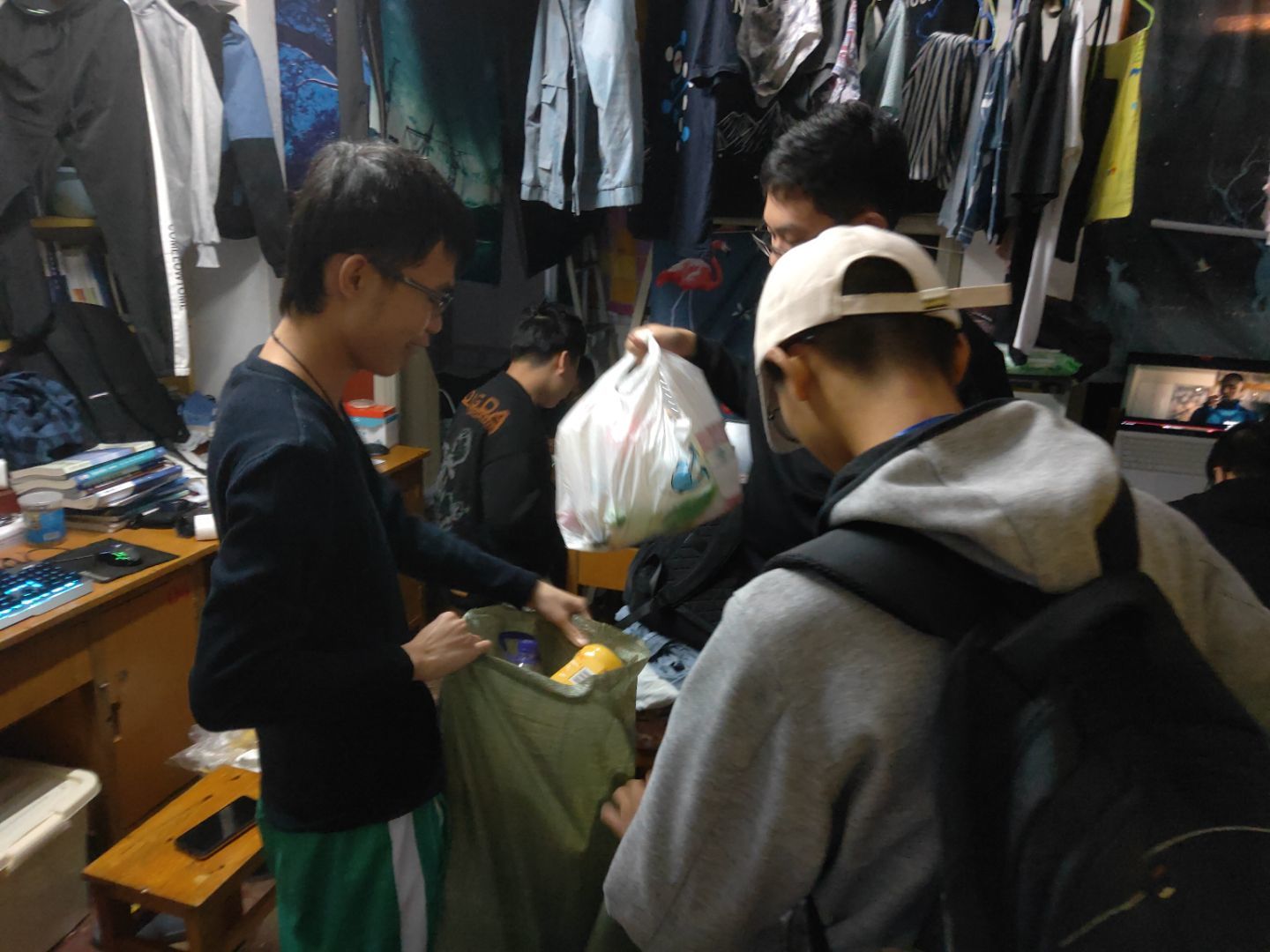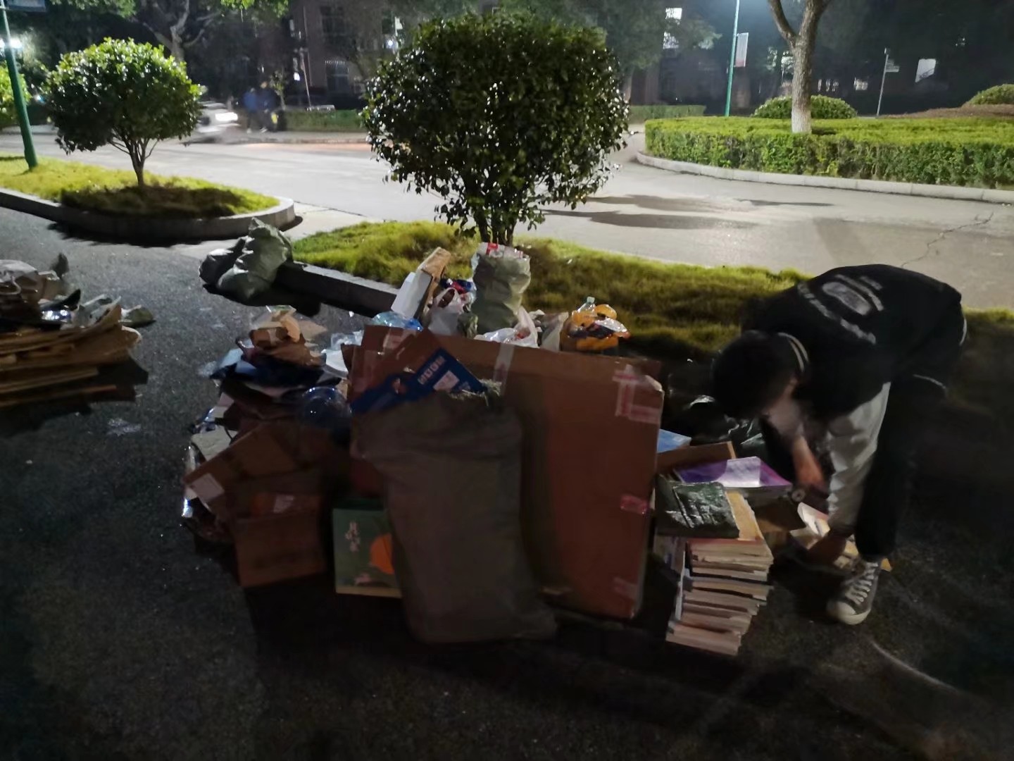 大家于美术楼前分好组后由各组组长带领前往所负责的楼区,他们敲门、询问、回收、感谢,一套动作如行云流水,既礼貌又能干。整个过程中,大家协调配合,在自己任务完成之后积极帮助其他组员。回收完毕之后,大家于美术楼前集合并将“战利品”汇总,淅淅沥沥的小雨丝毫没有影响大家的热情,最后大家齐心协力将废品运送到回收站。