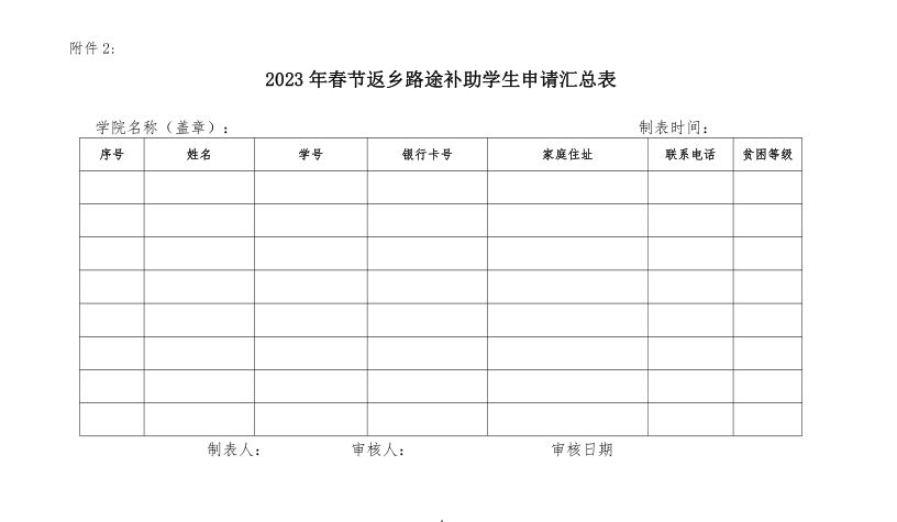 2.2023 年春节学生返乡路途补助申请汇总表
