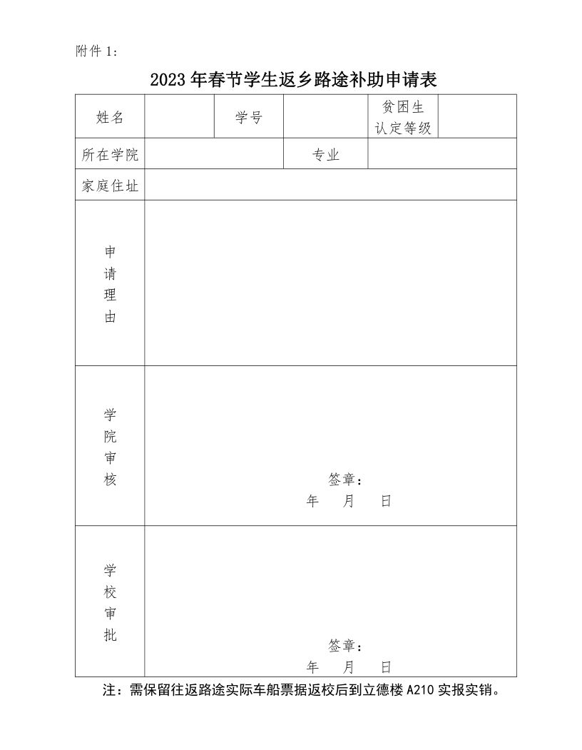 附件 1.2023 年春节学生返乡路途补助申请表