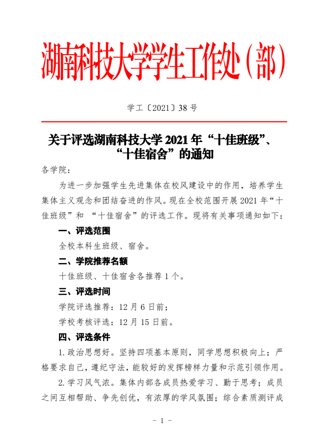 关于评选色色漫画 2021年“十佳班级”,“十佳宿舍”的通知