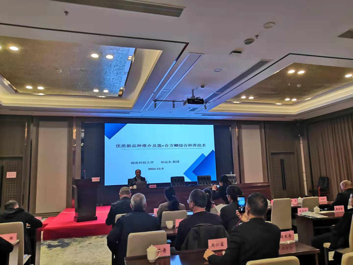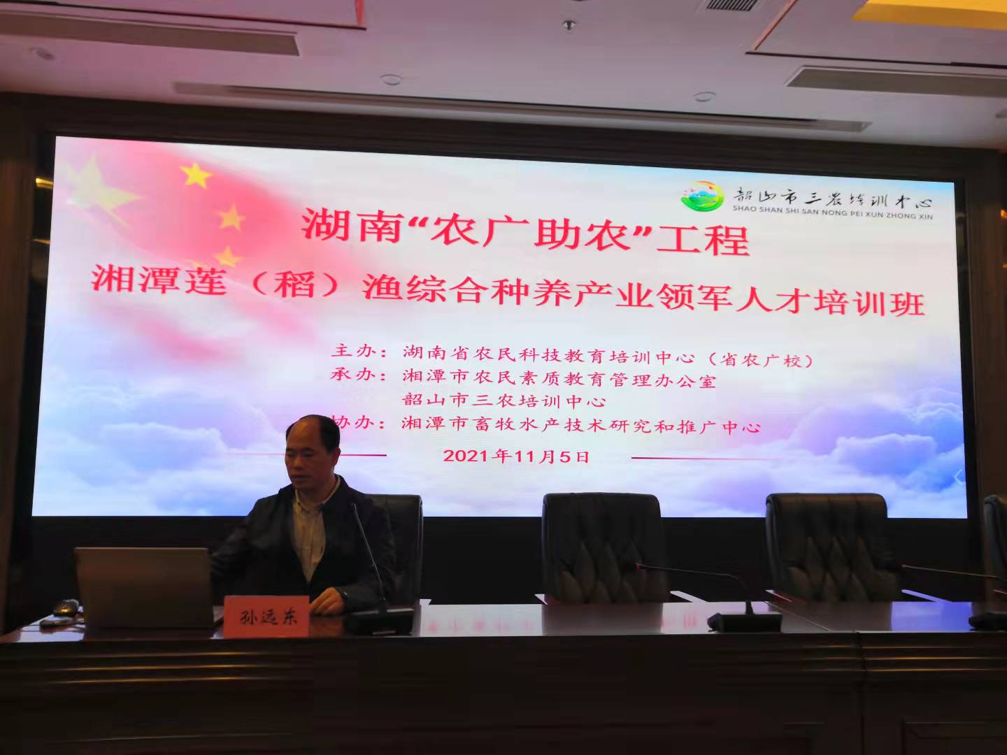 2021年11月5日,生命科学色色漫画 孙远东教授应邀给“湖南‘农广助农’工程湘潭莲(稻)渔综合种养产业领军人才培训班”学员授课。