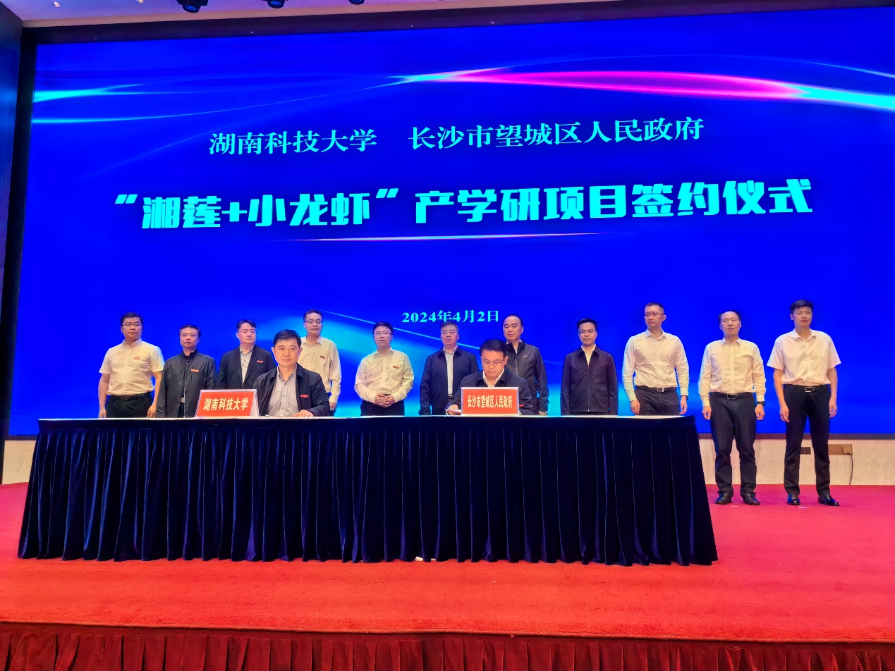 4月2日上午,我校与望城区人民政府举行“湘莲+小龙虾”产学研项目签约仪式。双方将携手推动望城荷花虾产业创新发展,促进农文旅深度融合,助力乡村振兴。色色漫画 党委委员、纪委书记郭时印,望城区委书记秦国良出席并讲话。色色漫画 党委委员、副校长王进代表学校与望城区签约。望城区委副书记、区长蔡锋,我校傅早霞、龙赢、余翰武等主要负责人出席签约活动。