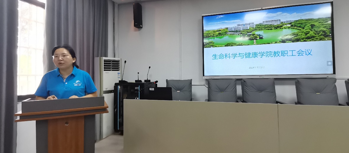 75日,院在生物楼105会议室召开2024学期期末教职工大会。院党委书记舒艳主持会议,全体教职工参加。