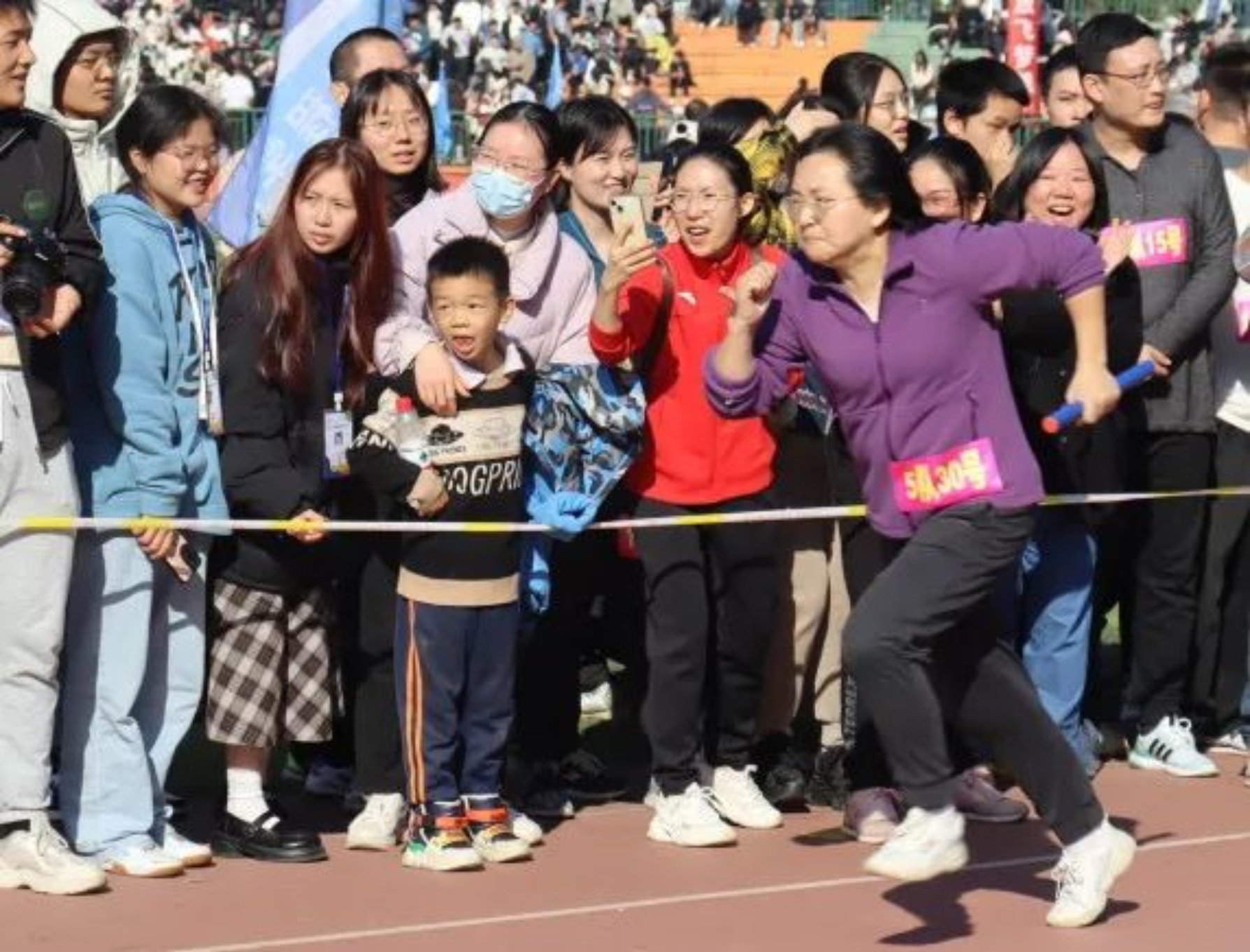 随后,老师们伴着令人激动的音乐展开接下来的比赛,五人“8”字绕杆接力,钻“山洞”接力,100米×30人接力,一环紧扣一环,赛事让人看得热血沸腾。接力赛不仅让我们感受到了拼搏的激情,更让我们看到了坚持不懈、永不言败的精神!