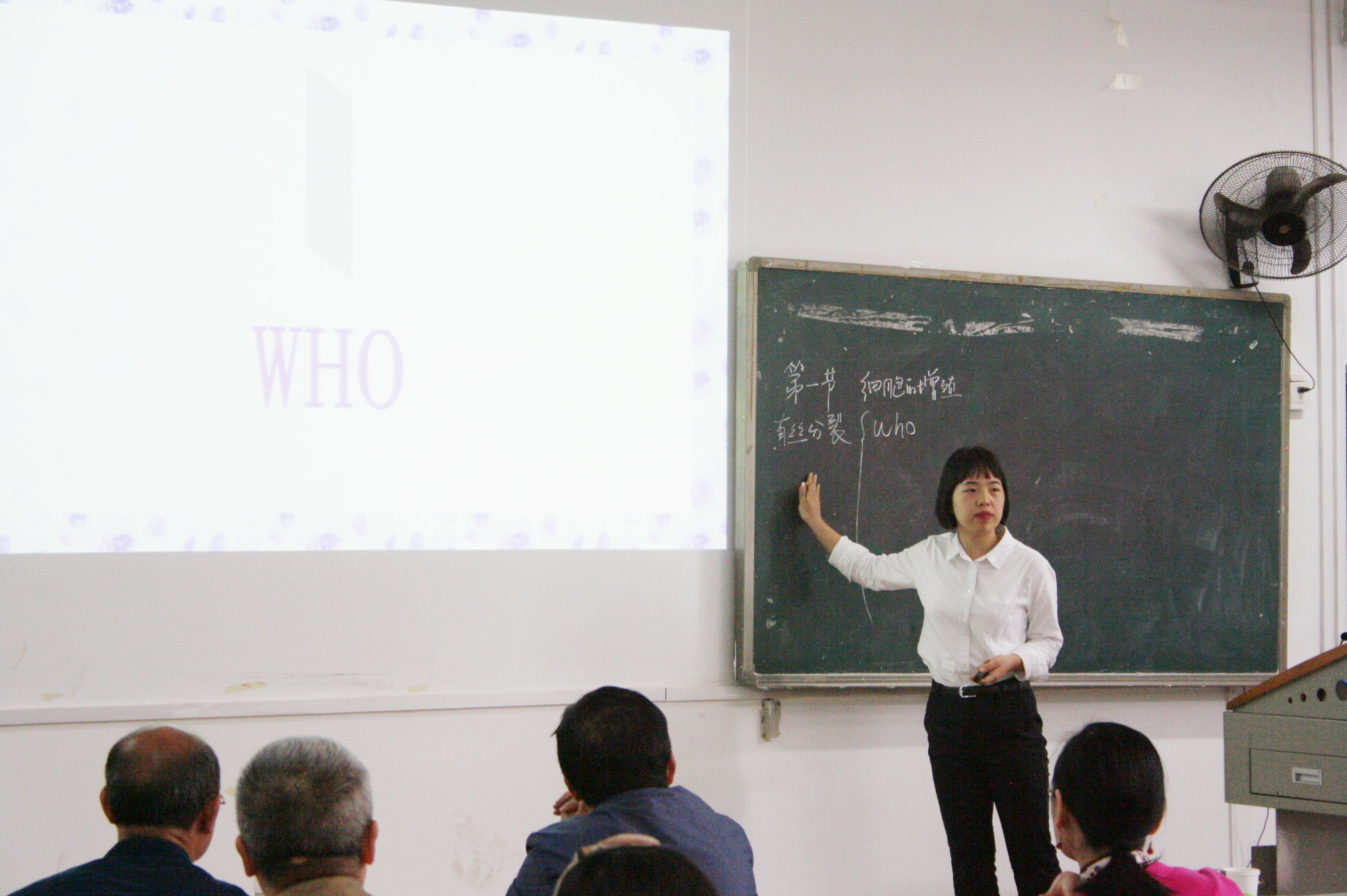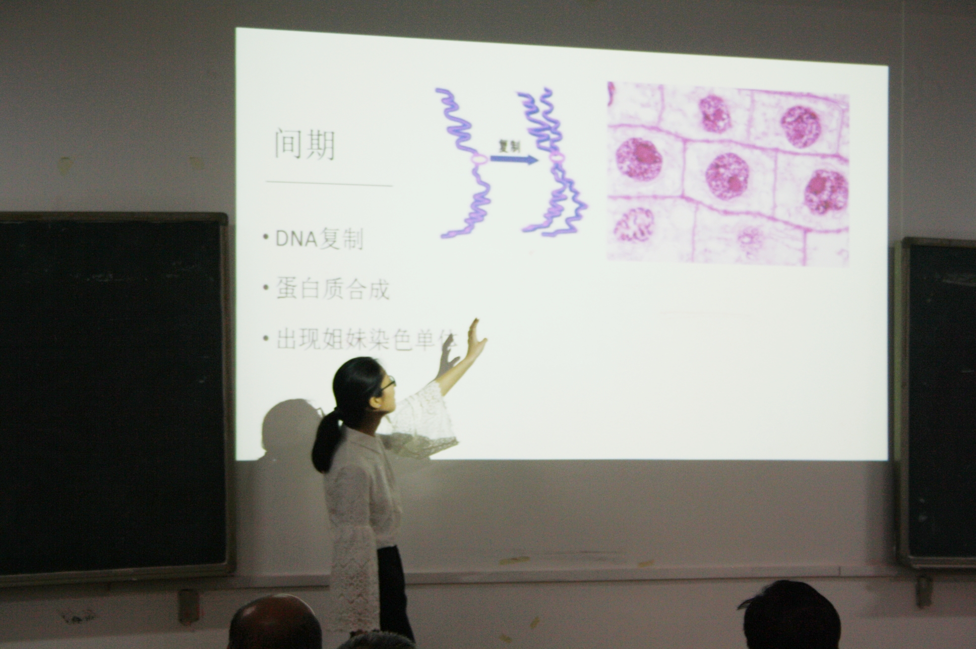 而选手邹择芬则是通过与师生互动环节提出了“脱发是90后面临的最大问题”从而引出讲课的主题“细胞分化”,她将教学与生活相结合,并且她的讲课语言表达准确精炼,讲解生动富有逻辑。最后在一片掌声中完成了讲课。