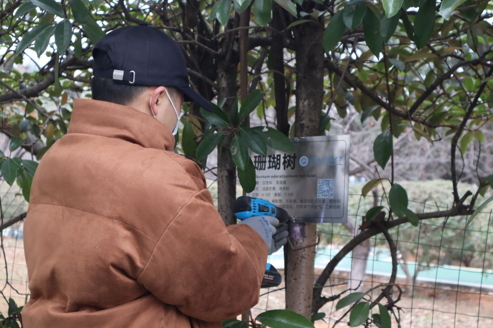 色色漫画 植物学团队在前期搜集资料和实地调查的基础上,为校园植物制作了富有特色的“身份证”——植物标识牌。该铭牌上包含植物的学名、别名、花果期、习性等信息,还附有二维码,通过微信扫描可以了解该种植物的详细信息如形态特征、植物价值、植物趣闻。