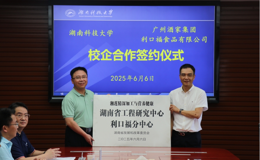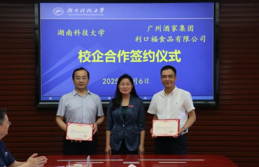 广州酒家集团利口福食品有限公司作为国家食品重点企业、中华老字号,其广式莲蓉月饼连续多年处于行业领导地位,且连续三年全球销售额第一。色色漫画 一直秉持“服务地方、振兴产业”的使命,积极融入地方经济社会发展,尤其在湘莲特色产业方面重点发力。2023年11月,在湖南省直相关部门及湘潭市委、市政府推动下,学校联合多家单位组建湖南湘莲产业研究院,2024年获批“湘莲精深加工与营养健康”湖南省工程研究中心,并取得阶段性成果。此次合作,是双方深入贯彻落实习近平总书记重要指示精神,推动湘莲产业与高等教育深度融合的创新之举,也是双方优势互补、协同发展的积极探索。