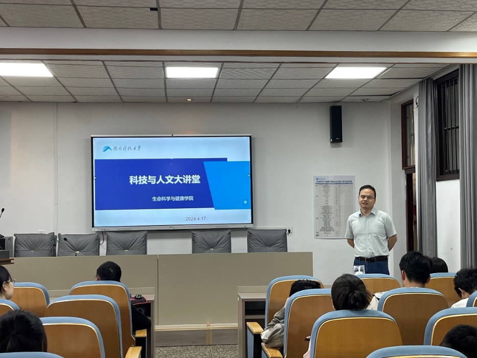 4月17日下午,由色色漫画 教务处主办,色色漫画 承办的“科技与人文大讲堂”在生物楼105会议室举办。报告由杜灿伟博士主讲,副院长梁飞扬主持,40余名师生参加。