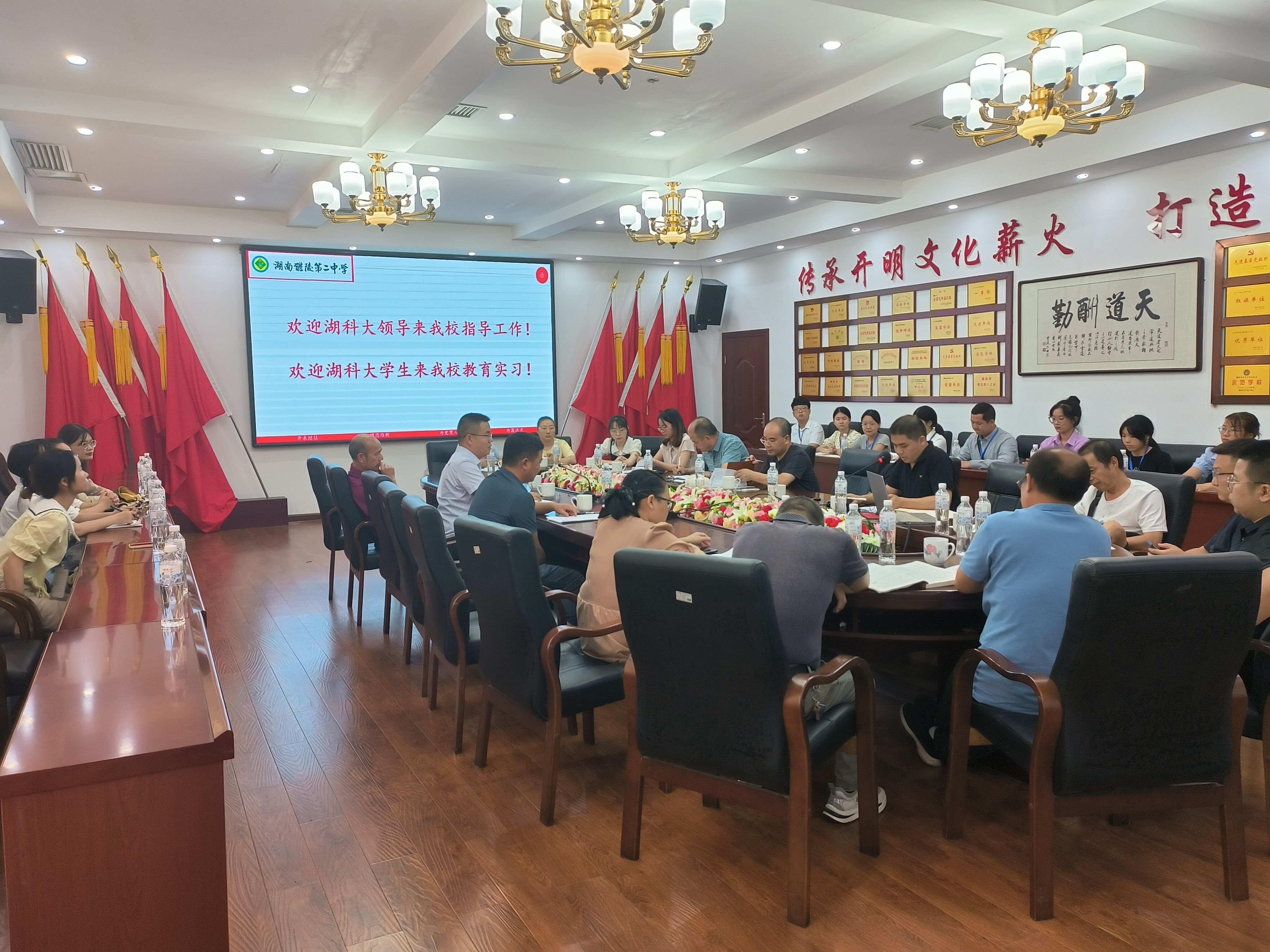 在醴陵三中,谭世明校长介绍新组建的醴陵三中基本情况,对我校生物科学师范专业的教育实习队表示最热烈的欢迎。杨毅鑫副校长、刘万里副校长、王华副校长、党委委员兼总务主任易莎等校领导均出席本次教育实习启动仪式。双方就教育实习基地建设深入交谈,期望以本次教育实习为契机,加强“高校-中学”的合作,翻开醴陵三中和色色漫画 合作的新篇章,助推基础教育和师范教育的双赢。会议由杨毅鑫副校长主持。