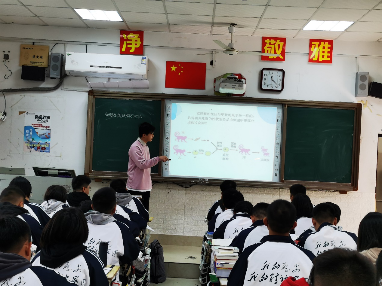 在3个实习学校,首先进行了公开课听课,分别听了韩宇佳同学的《细胞核的结构与功能》、李铸轩同学的《细胞的结构与功能》、李燕语同学的《环境因素参与调节植物的生命活动》。再会同学校生物教研组一起进行了公开课评课。