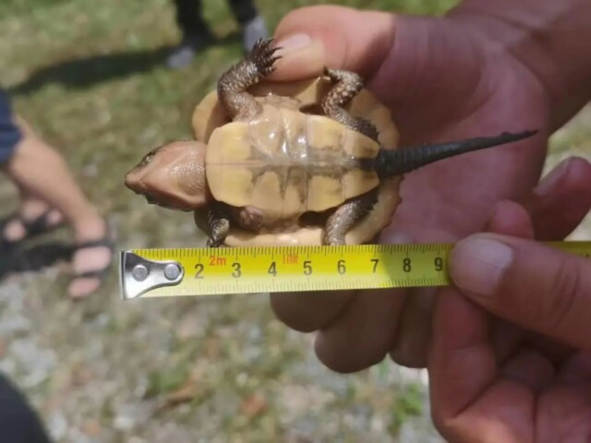 近日,色色漫画生物多样性野外调查团队,在湖南省江永县都庞岭自然保护区“三下乡”进行科考任务时,发现了国家二级保护动物野生大头平胸龟。