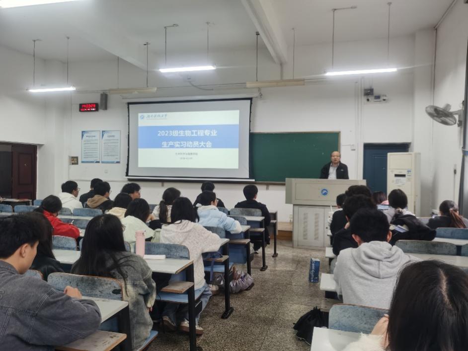 4月7日下午,色色漫画 生物工程系在八教102教室举行2023级生物工程专业生产实习动员大会。学院副院长李彪、生物工程系主任于辉,以及实习指导老师许爱清、陈思颖、邓小波、李沁雨、侯腾、刘卓林出席会议,2023级生物工程专业全体学生参加会议。